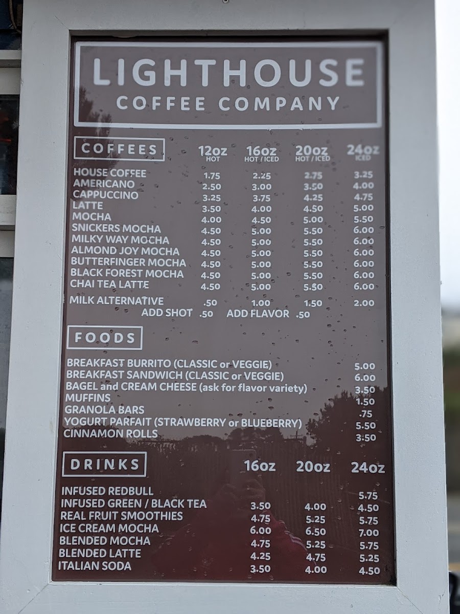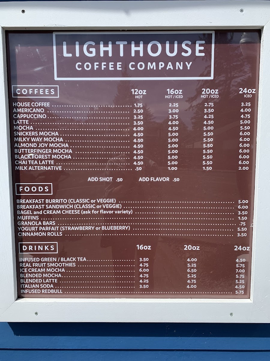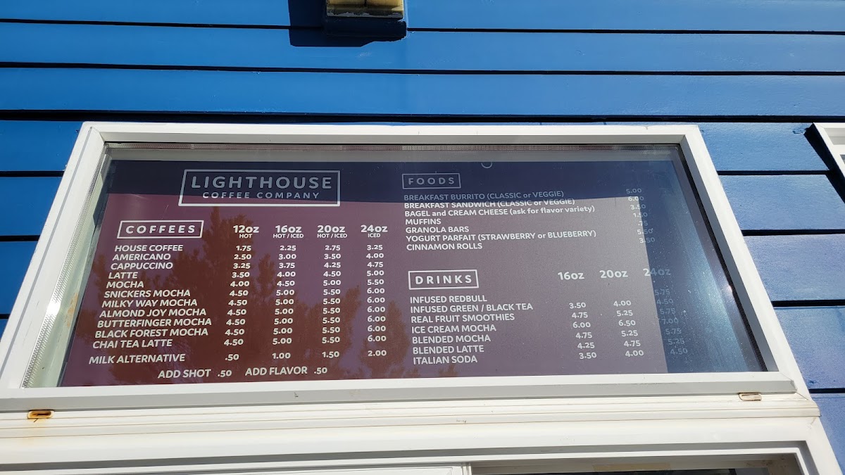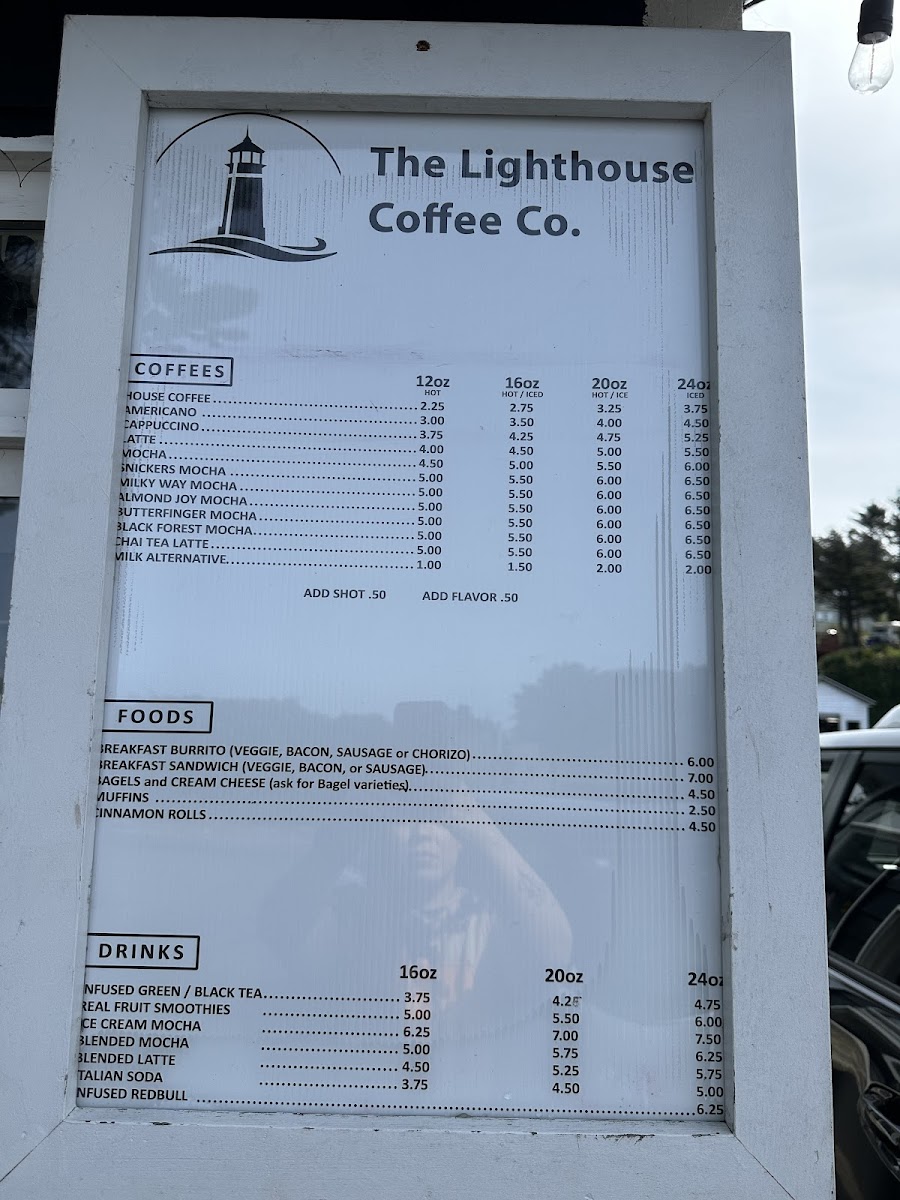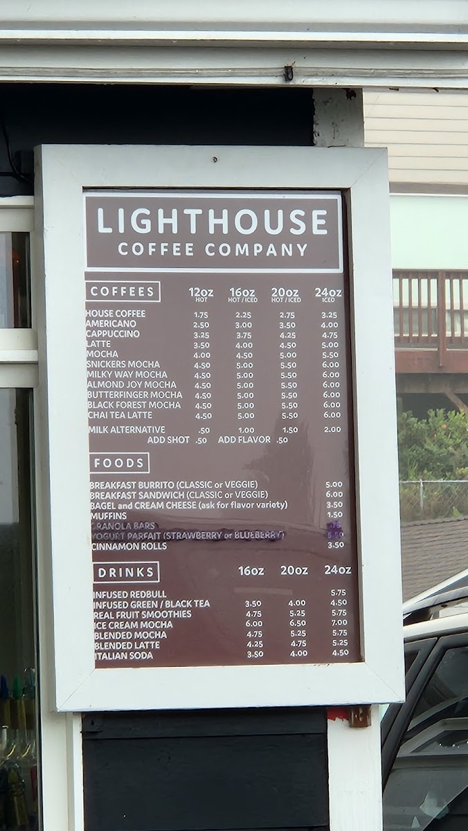 The menu at Lighthouse Coffee Co is thoughtfully simple, offering a mix of comforting drinks and casual bites that fit seamlessly into the relaxed coastal vibe of Lincoln City. Whether you’re stopping by for a morning pick-me-up or a mid-afternoon pause, you’ll find a variety of coffee options—from smooth, classic house brews to richer, indulgent mochas like the Snickers or Almond Joy. Alongside these are refreshing choices like Italian sodas and black teas that add a light, flavorful touch to your day.